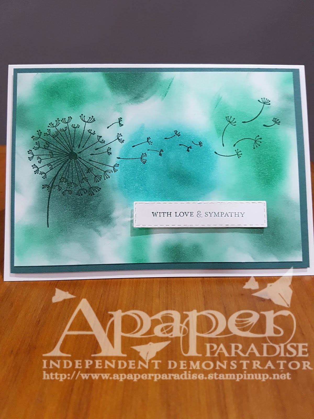 - Place Stampin’ Dimensionals on the back of the Whisper White card and adhere to the Seaside Spray card.